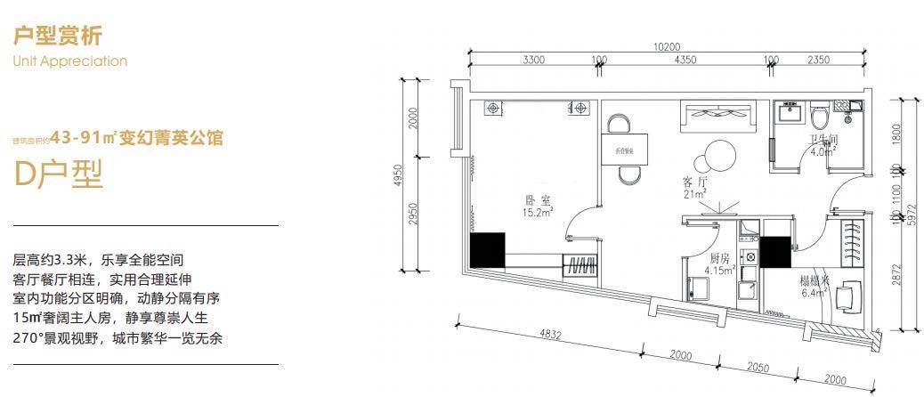 可交于 锦江国际(世界第二,亚洲第一酒店集团)旗下欧暇地中海酒店运营,清水交房后8个月为装修期(没有收益),装修好后6个月期间作为酒店培育期,没有保底收益,享受酒店运营分红收益(收益五五分成),从第7月开始,正式享受保底(保底30元/平)加酒店运营五五分红, 平均收益:3800-4000/月!